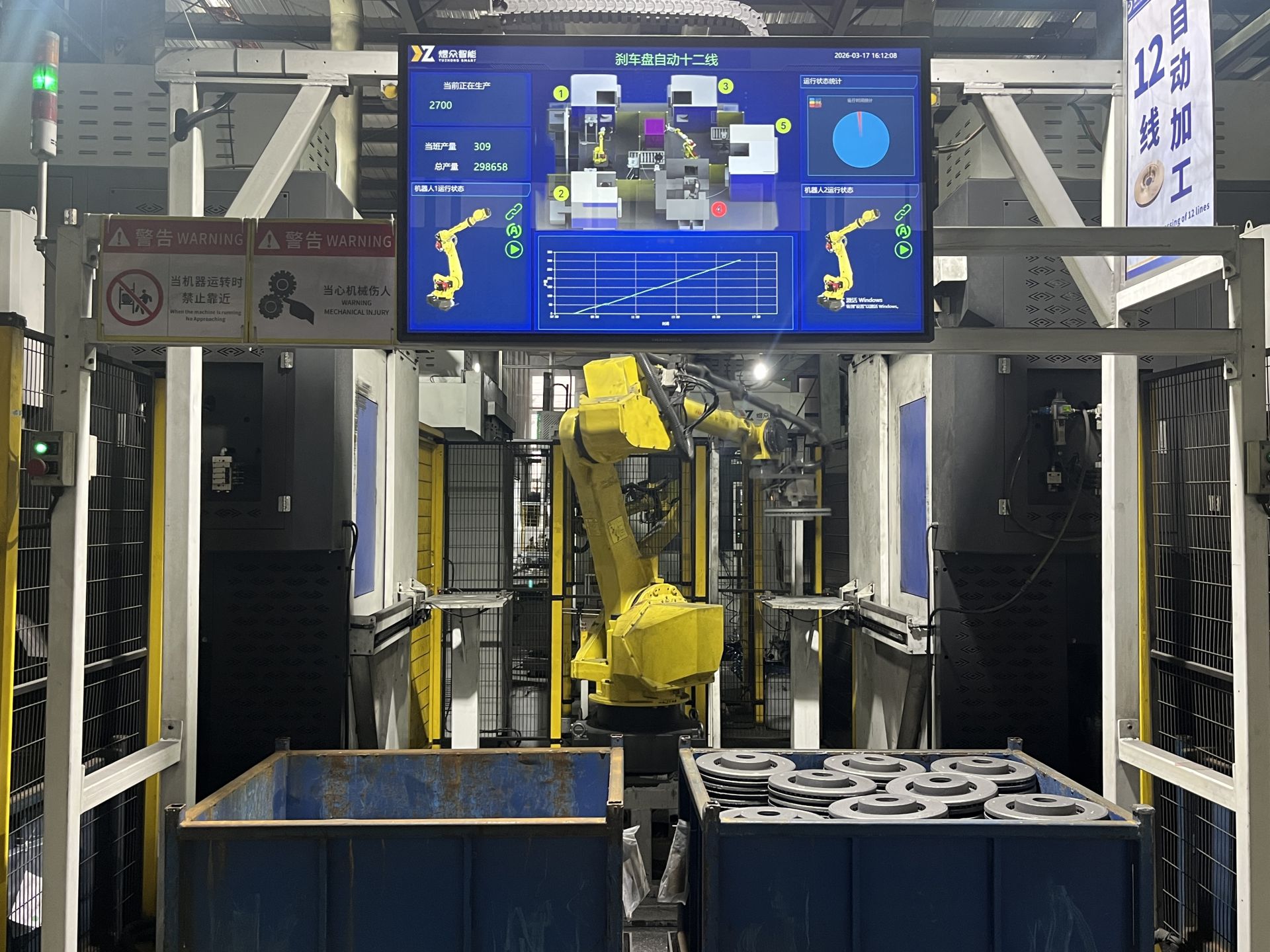 “相当于两个机械手服务五台设备。”加工车间主任张浩指着显示大屏说,屏幕上的数据实时跳动:生产型号、当班产量、总产量……一切都清晰可控。