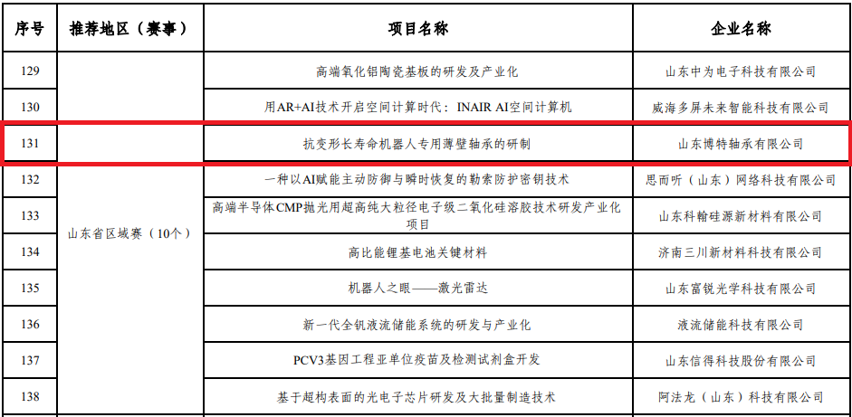 该公司凭借“抗变形长寿命机器人专用薄壁轴承的研制”项目,在众多参赛企业中脱颖而出,成功跻身全国企业组500强。这一成果,是对山东博特轴承有限公司创新实力与技术水平的高度认可。