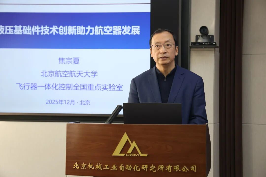 中国工程院院士、创新中心专家委员会主任委员焦宗夏在大会上作了《液压基础件技术创新助力航空器发展》前沿学术报告,深入剖析液压技术发展的关键瓶颈与创新方向,并建议通过多学科交叉融合与机制创新,构建协同发展的产业生态,提升我国液压行业的自主创新能力,支撑国家基础工业体系现代化建设。北自所党委委员、副总经理吴双分享了北自所智能制造实践案例,展示出数字化技术在液压部件研发中的落地成效。