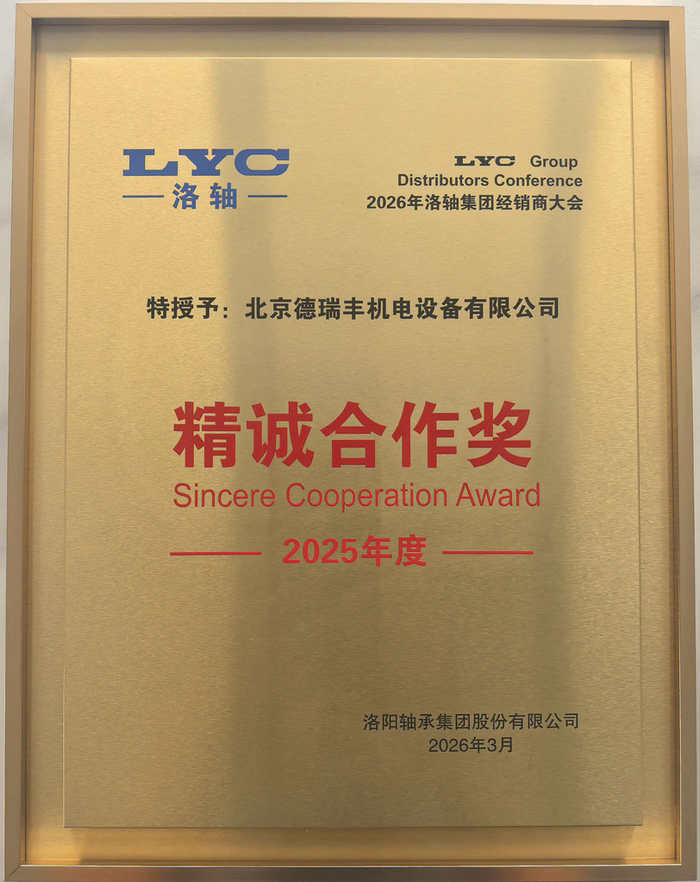 此次荣获“精诚合作奖”,是洛轴集团对北京德瑞丰机电设备有限公司长期以来精诚配合、协同发展的充分肯定。双方表示,未来将持续携手并进,不断优化产品与服务,更好地满足和服务广大客户的需求,共同推动工业配件领域的高质量发展。