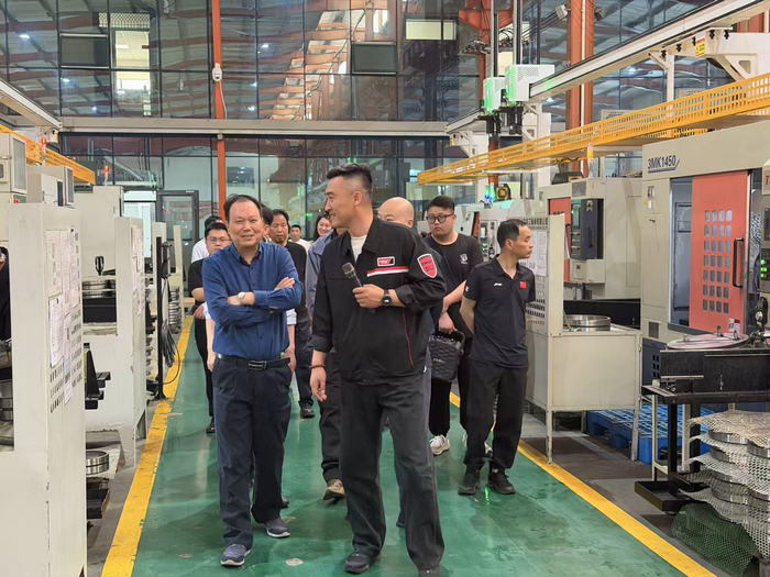 会前,新昌县企业考察团一行深入山东华工轴承有限公司进行实地参观考察。考察团成员走进生产车间,仔细察看了从原料到成品的全流程生产线,详细了解华工轴承在产品研发、技术创新、生产经营及未来规划等方面的发展情况。