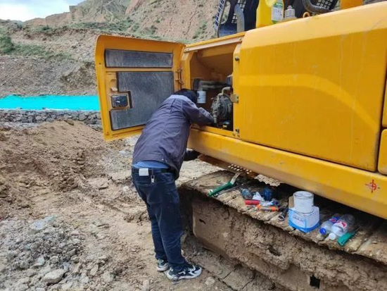在烈日和高海拔下,瓦增仓踏上了艰难的旅程。他沿着河道前行,每一步都充满了决心和坚持,他心中只有一个目标:确保挖掘机能够及时投入施工,为客户提供高质量的服务。抵达挖机施工地点后,他迅速展开工作,快速定位并解决了挖掘机的故障。